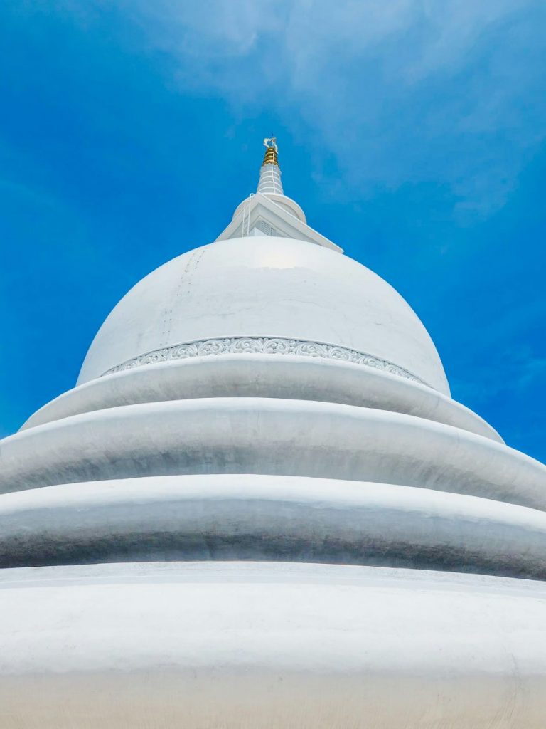 Nestled in the Rumassala forest, the Japanese Peace Pagoda overlooks Unawatuna and Galle Bay. Built in 2005, it symbolizes unity between cultures and honors the victims of the 2004 tsunami.