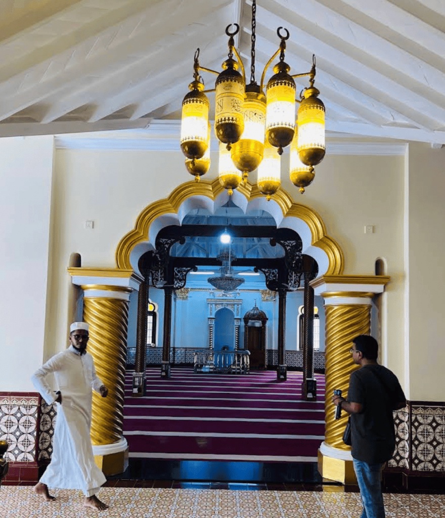The Jami Ul-Alfar Mosque, better known as the Red Mosque, is one of the most photographed religious buildings in the country. Its red-and-white architecture, almost graphic in quality, stands out against the bustle of the Pettah market. It embodies an urban Islam, fully integrated into the economic and social life of Colombo.