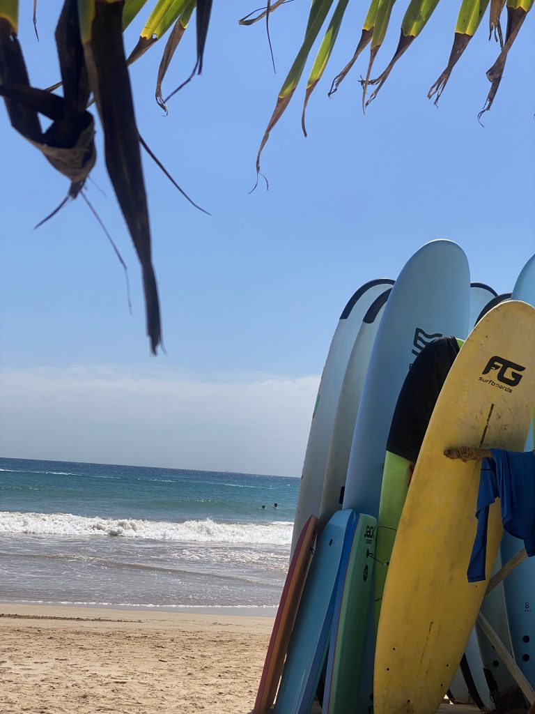 La ville est développée autour d’un axe principal, ce qui la rend moins esthétique que d’autres destinations côtières, mais très fonctionnelle pour les voyageurs qui veulent tout avoir à portée de main : plages, restaurants, écoles de plongée, surf shops et transports.